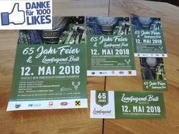 65 Jahre ist unsere Landjugend nun schon alt, 65 Jahre haben wir mit Hand, Herz und Hirn für die Heimat gelebt. Nach diesen tollen Jahren, feiern wir am Samstag, den 12.Mai, unser Bestehen. Nach dem Festakt am Nachmittag gibt es im Festzelt neben Losen, toller Musik und Einlagen natürlich auch genügend Speis und Trank. Die Vorbereitungen laufen schon auf Hochtouren & Wir freuen uns schon sehr auf euer Kommen!